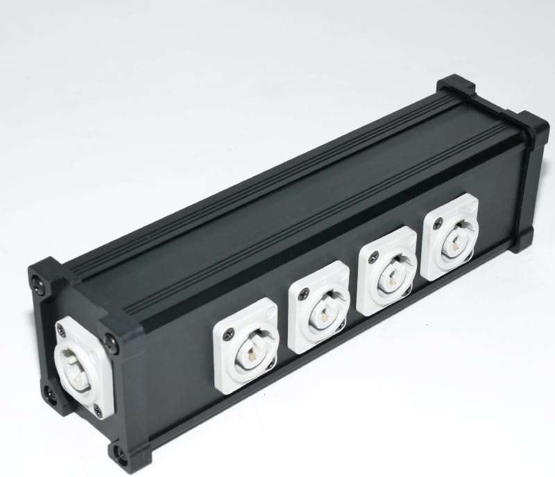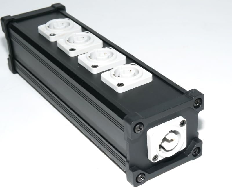 4 Port Powercon Power BoxInput Voltage: AC 110V-240V 50-60HzInput: 1Blue Powercon , Output: 4 White Powercon Dimensions: 7.4 x 2.2 x 2.4 inchNet Weight: 0.379kgPackage Content:1x PowerCon Breakout