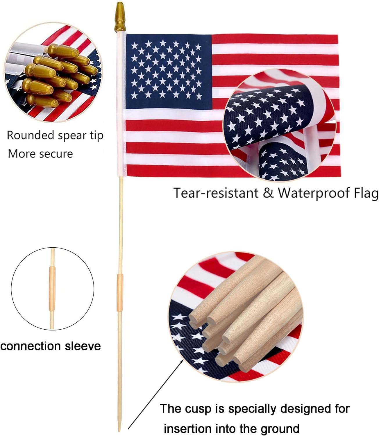 | Included Components | 50 x (8x12 inch flag, 15.8 inch wood stick), plus 7.8 inch wooden stick, and 2.3 inch connection pipe |