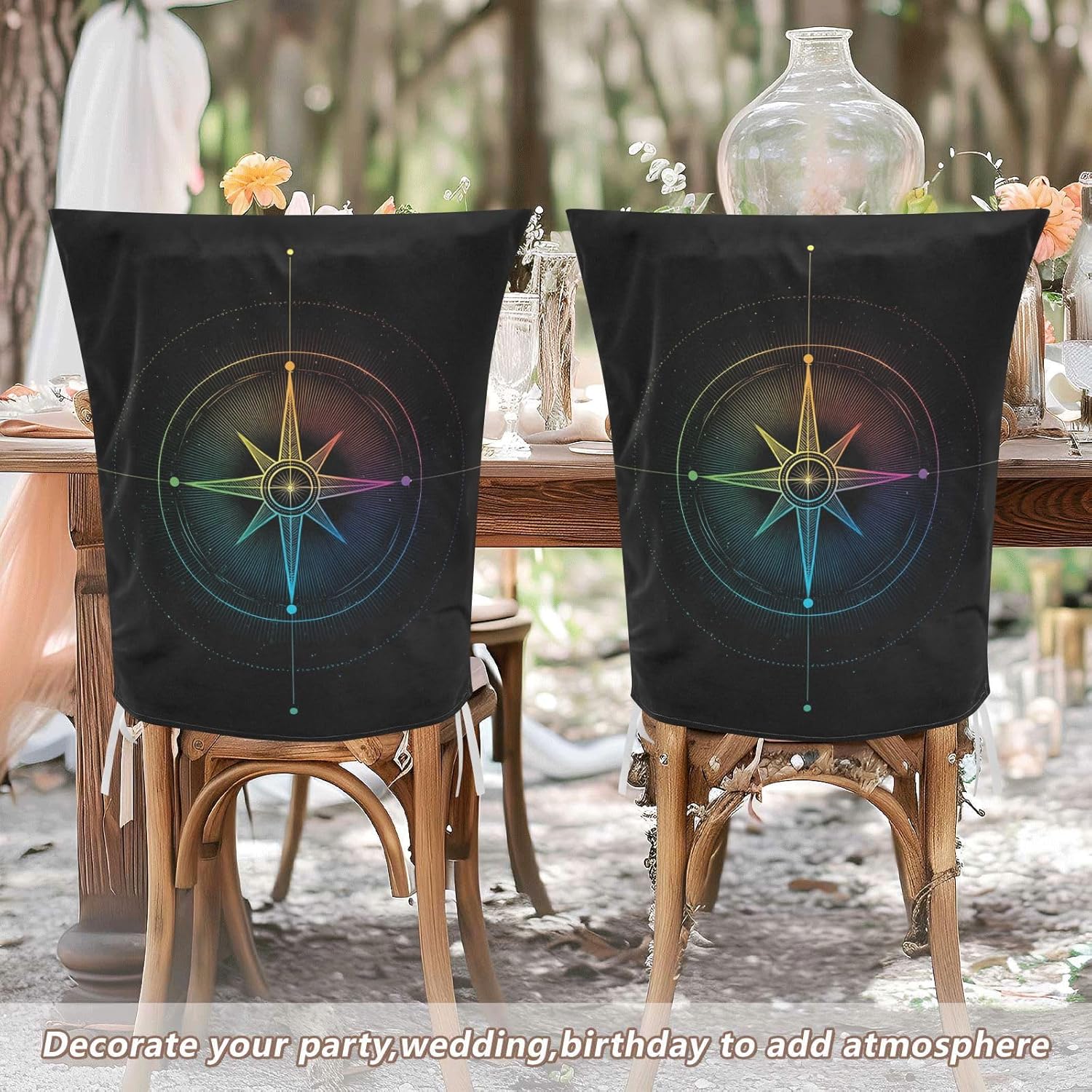 Chair Cover Material made of polyester,comfortable and soft to touch,reusable and suitable for long term use Features easy to install and remove, tie rope design at the bottom,machine washable Stylish Chair Decoration With beautiful pattern,it can be used for family party/ birthday party/wedding/ holiday party to add atmosphere, also can be used for chair decoration in living room, dorm, kitchen dining room,bedroom to bring protection to the chair while avoiding stains to dirty the chair back. Easy To Care Machine washable, Not washing with hot water, Not bleaching
