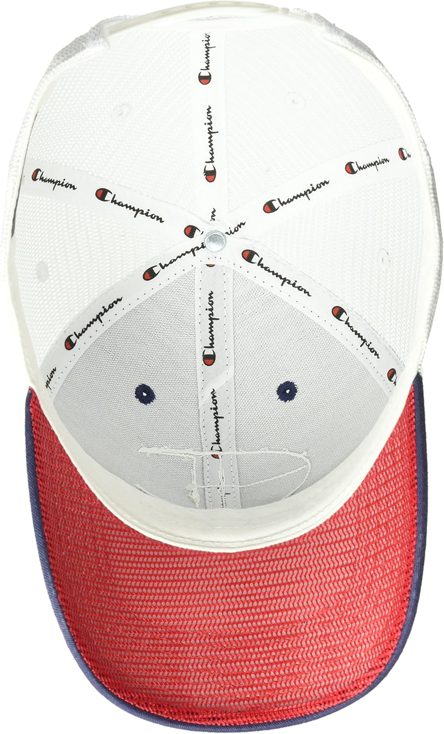 Low profile with contrast material on back. Curved brim with contrast color underneath. Embroidered ventilation holes on crown.
