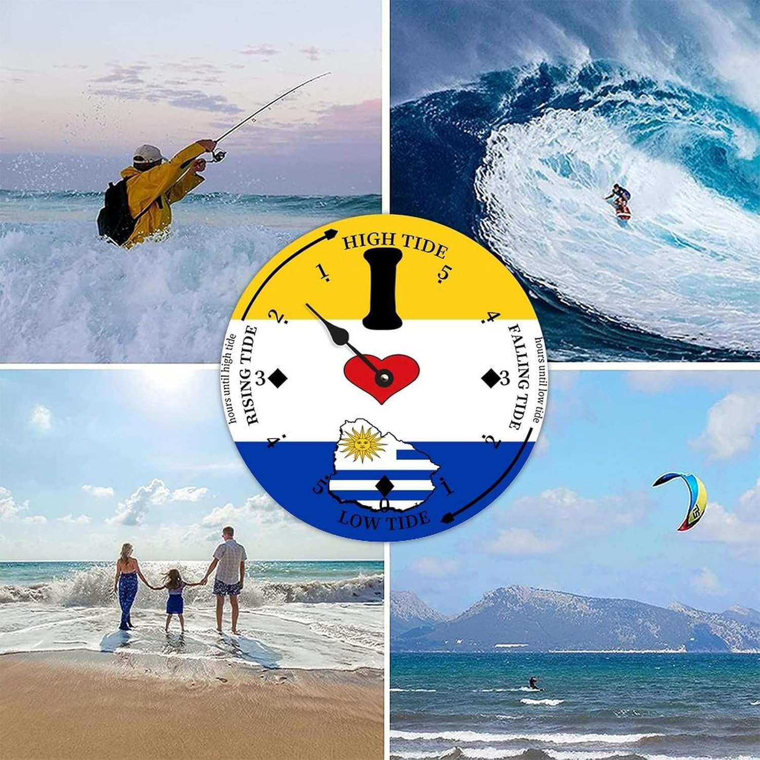 Wood Tide Clock High and Low Tide Clock Moon Movement Clock Nautical Moon Wooden Tide Clock East Coast Ocean Time Clock Ocean Time Clock Wooden Nautical Movement Tide Clock Tide Clock for Beach Seaside House Cottage Sailing Gifts Made of high-quality wood. Without frame or glass cover. Powered by "AA" battery (not included). You can customize the text and image of the clock for free. Just send the personalized information (text/photo) you need to us after you place the order,we will design for you. It is a best gift for dad, husband, surfer, fishing lover, friends, family and who you love. Also a wonderful idea for summer, new home, housewarming, wedding, birthday, Christmas, New Year, Father's day, Mother's Day. It is perfect for bedroom, living room, kitchen, computer room, coffee shop, office, conference room, beach house, deck, patio, farmhouse, cottage, cabin, classroom, bathroom, nursery, school, guest room, dining room, cafe room, pub, club, restaurant, bar, hotel, library or any wall of any color.