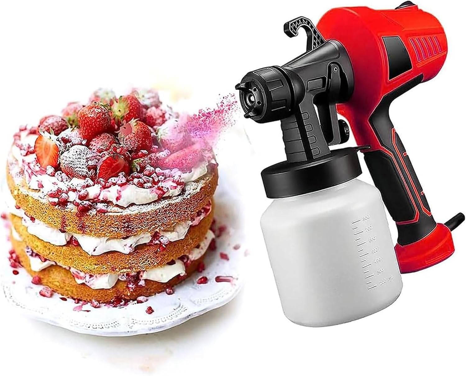 The dessert chocolate spray gun, a must-have for all baking enthusiasts out there. Indulge in baking fun as you unleash your creativity in decorating cakes, chocolates, mousses, fondant cakes, and so much more with this amazing spray gun. Our chocolate spray gun can save you a lot of , become a good helper in your life, and create a lot of wealth for you! Specifications: Name: Chocolate spray can Power consumption: 500W Material: ABS/copper Coating supply method: siphon Spraying size: 200mm/7.8in Oil storage tank: 800ml Product size: 25x26cm/9.8x10in Packing List: 1* Chocolate spray can Funnel nozzle Warm Tips: 1.Before using, please choose proper copper nozzle, spray patterns. Check if you have tighten up the container and paint tube. 2. Most importantly, please read the product user manual carefully before using it. It is recommended to clean the sponge regularly to protect the machine effectively.