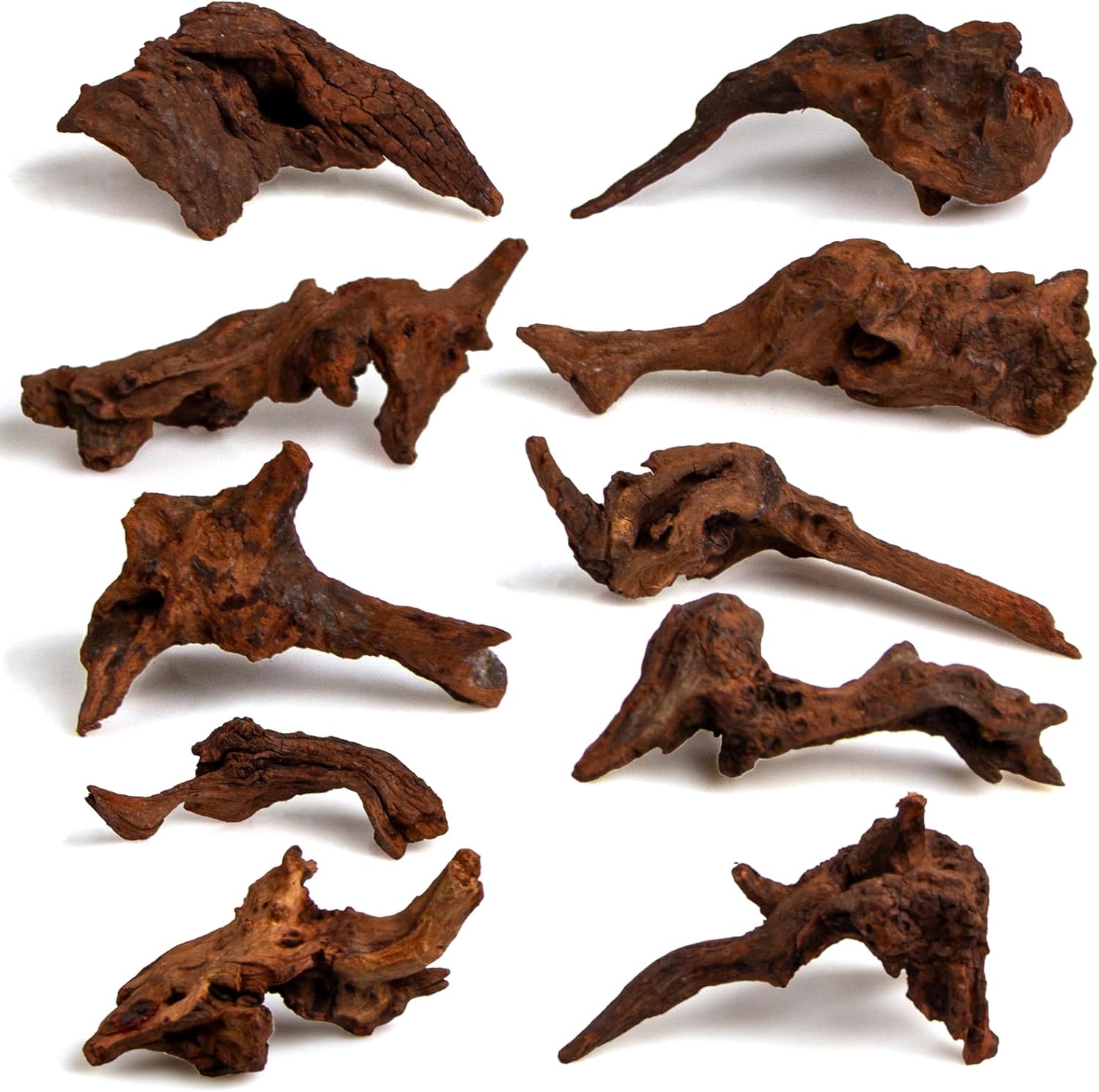 Natural Small Driftwood for Nano AquascapesCreate instant hardscape with curated 2–6 inch (5–15 cm) branches. Each piece is unique, adding depth and natural texture for shrimp, betta, and planted nano tanks. Also suitable for small reptile terrariums as natural climbing or hide décor.Why Choose ItNatural branch shapes – Easy to arrange into trees, arches, and caves.Low-tannin selection – Clearer view when properly pre-soaked.Smooth touch – No sharp edges; gentle for shrimp and betta.Plant-friendly – Tie moss and epiphytes directly to the wood.Versatile use – Freshwater aquariums, shrimp/betta tanks, and reptile terrariums.How to UseRinse thoroughly, then soak or boil to speed sinking and reduce tannins.Arrange with stones or substrate; tie plants as needed.Initial tint is normal and decreases after water changes.What You’ll GetChoose 5-piece or 10-piece set (select variant on this page).Each piece is approximately 2–6 inch (5–15 cm); shapes and thickness vary naturally.Notes: Wood is a natural material; color, grain, and shape vary. Pre-treatment (soak/boil) is recommended before use to help sinking and minimize coloration.