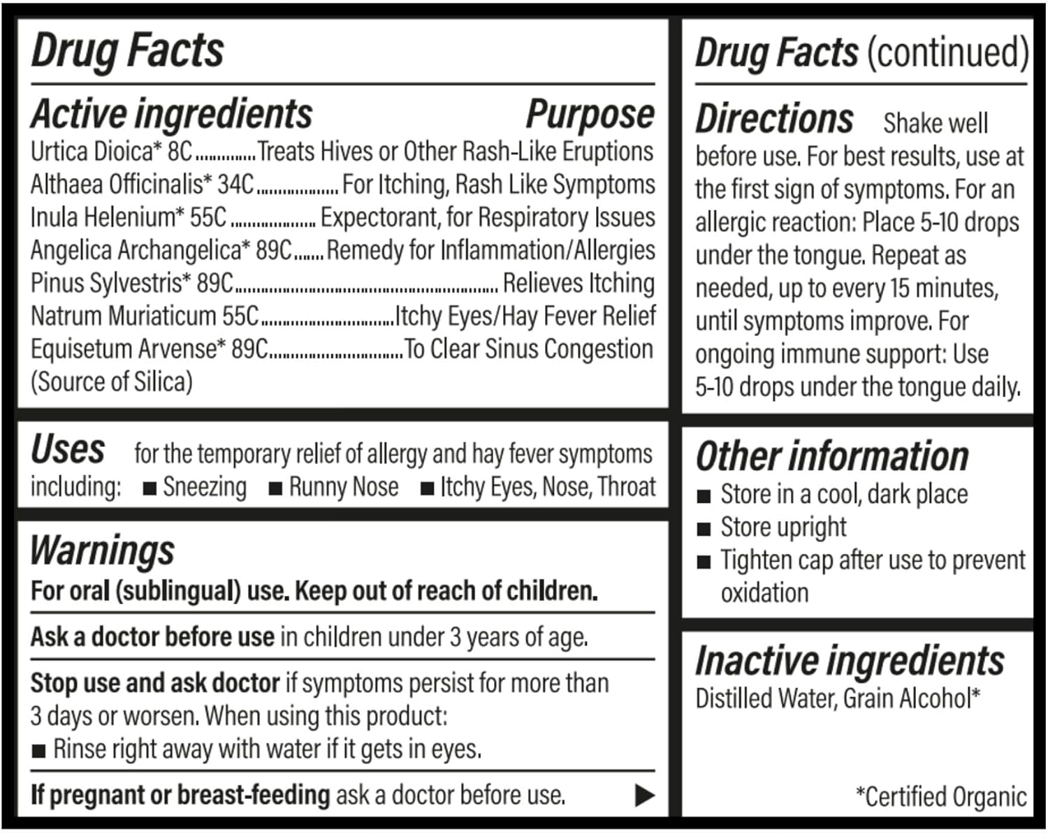 Indoor, outdoor and seasonally triggered allergies can bring you down, interfering with your day and your sleep. We created Forces of Nature Maximum Strength Allergy Relief to provide a natural, organic, homeopathic solution that temporarily alleviates indoor, outdoor, and seasonal allergies. It works naturally to reduce allergic irritations caused by pollen, grasses, ragweed, and animal dander. Use just a few drops of our natural allergy support under the tongue, to effectively relieve allergy symptoms like sneezing, itchy, runny nose, and itchy, red eyes. Allergy Relief also works to bring down throat and mouth irritation and effectively supports the body's natural ability to build long-term resistance to allergens. Manage your allergies with an innovative, effective solution that relies on organic, plant-based ingredients. Natural relief with trusted plant remedies. Consider pairing with Forces of Nature Sinus Relief for additional seasonal symptom relief. Also available as Forces of Nature Allergy for Kids.