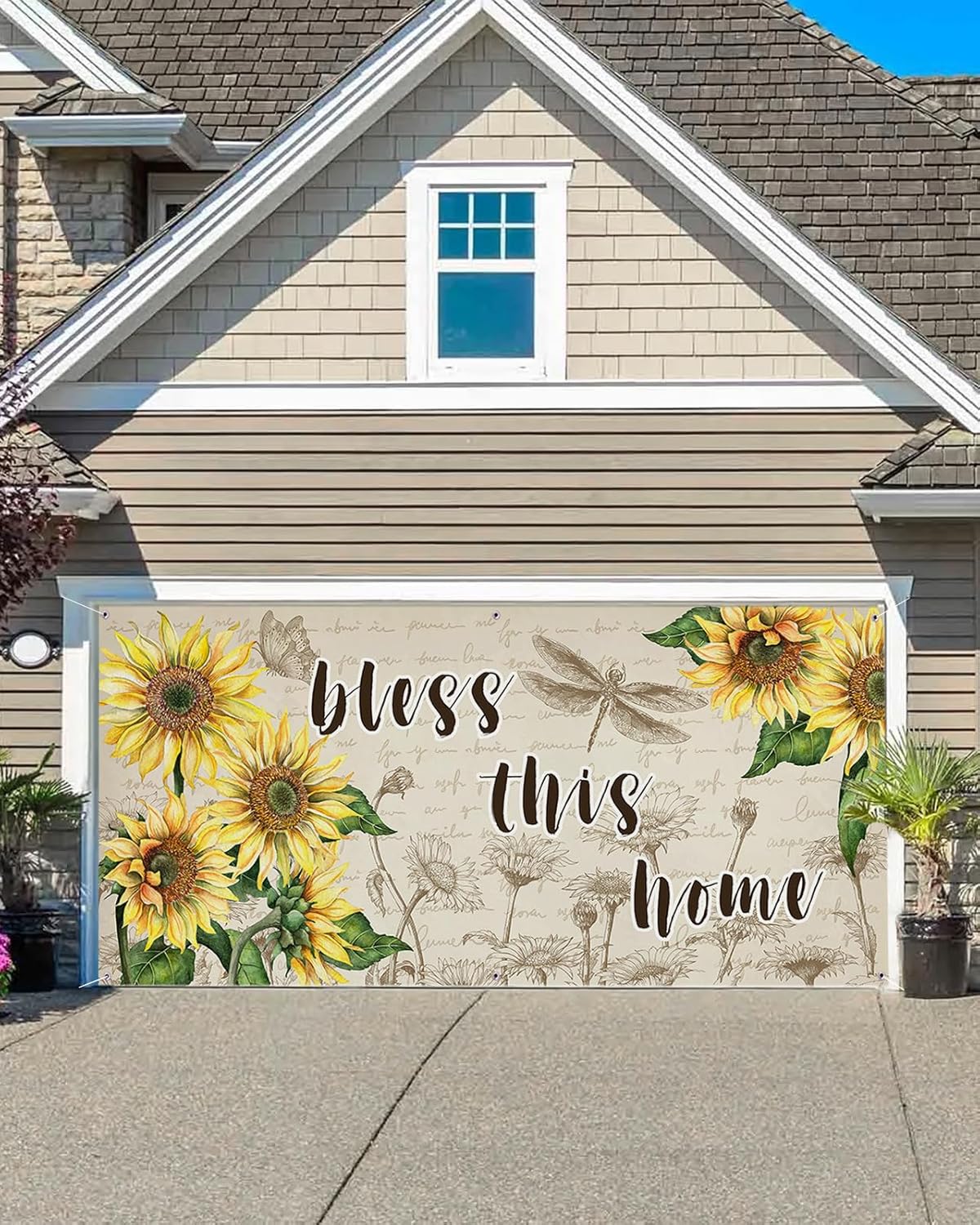 Size6x13Ft=72x156in6.9x16Ft=84x192in6.9x8Ft=84x96inCriative DesignGarage door holiday decorations come in many styles to your home decor, make your home stand out from your neighbors. You can take beautiful and memorable photos or selfies with this beautiful holiday decorations.FeatureGarage mural is made of polyester, 6 matel rings, you can easily use the rope pass through the ring and hang it,be easily attached to everywhere, durable, can reuse in all festive celebrations, it can withstand most weather, it won't deform and fade easily, and it can be used for a long timeEasy to UseFixed to your garage door, but also to any large wall or area. Garage door banners makes it a suitable decoration for homes, schools and other local areas, would be the perfect addition to your home or party decor.