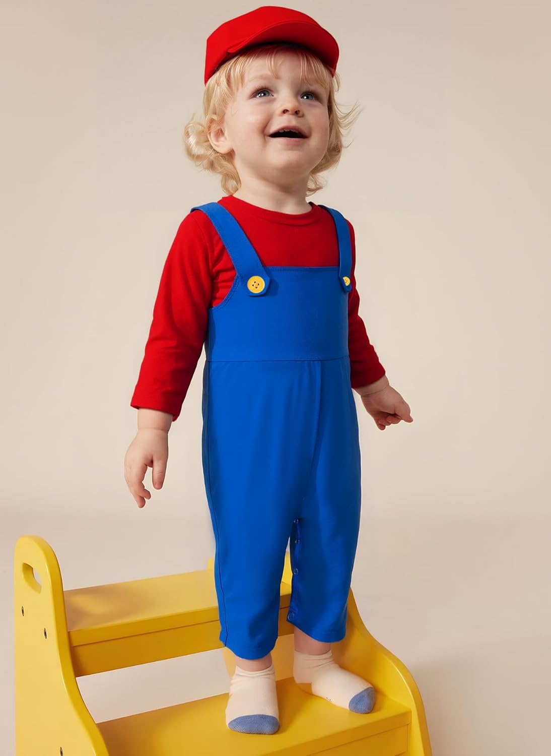 Kids' Blue Overalls Set A soft, breathable one-piece jumpsuit with suspenders, decorative buttons, and a matching cap. Features snap closures for easy diaper changes. Perfect for playtime, photos, or dress-up fun! Key Features: Soft, comfortable fabric Easy snap-button diaper access Adjustable suspenders & decorative details Includes matching cap for a cute coordinated look Ideal for: Everyday wear, playdates, photo shoots, and themed outfits. Care Instructions: Machine wash gentle, tumble dry low.