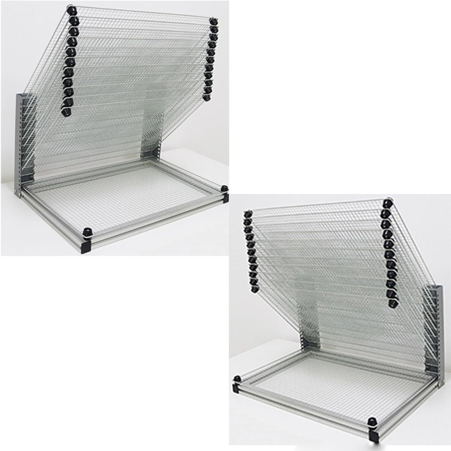 This is a 12-layer table placed flat push-type drying rack, suitable for a variety of industrial and product natural drying. Introduction: This drying rack is mainly used for drying and stacking of various products, saving space and improving efficiency. The 12-layer drying frame is mainly composed of a net frame, a bracket, a washer and screws, with simple operation and convenient installation. The user can change the number of layers and the height of each layer as needed. The frame has 12layers. If you need to place products with a height of more than 2.54 cm and less than 5 cm, you can remove some layers and connect the plastic pads with screws, and the frame can accommodate thicker objects. Parameters: Layers: 12 layers Machine surface treatment: Electrostatic spraying Machine size: 16.14*12.2*13.8"( 41*31*35cm) Normal interlayer spacing: 1" (2.54cm) demount some layers will enlarge bolt interval Use and maintain Before each use, check the installation screws, check the grid plate and check the black washer. If loose, please tighten it in time. After using, clean the grid frame, avoid material accumulation and blockage, affect the use effect. Check every part of the machine regularly. To prevent overload, in the use of the process, pay attention to safety. Item Number:ZM3040-12 desktop placed flip-open type drying rack--010450