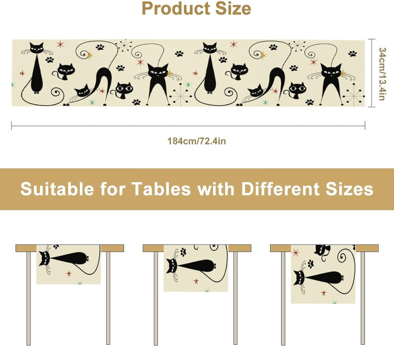 Applicable scenarios: You can place it anywhere you want, it can be used as a placemat, party decoration, kitchen, dining table, living room, picnic, barbecue and other places. It is also a good choice. Tips: There are 6 lengths for you to choose from, and manual measurement may have a 1-2cm error. Please carefully check the measuring table before purchasing this product. If the length you want is not available here, please contact us and we will customize it specifically for you. Product sizes include: 13x16 inches, 13x60 inches, 13x70 inches, 13x90 inches, 13x108 inches, and 13x167 inches.