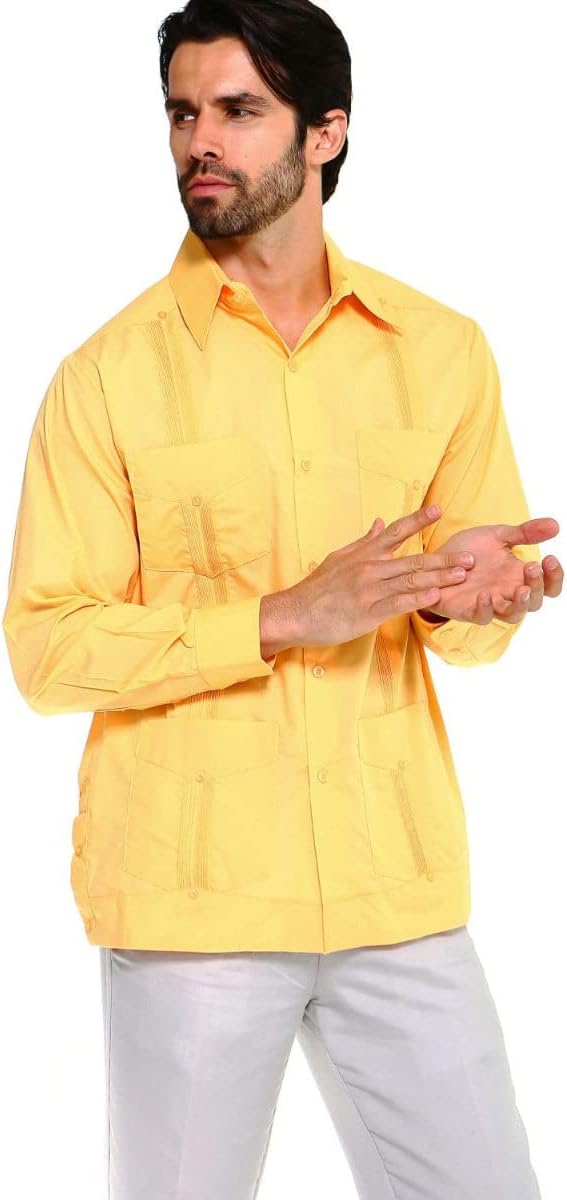 Product DetailsOne of our most popular styles, this long sleeve Mojito Guayabera is a staple for those who appreciate timeless design and effortless polish. Featuring a classic four-pocket layout, subtle embroidered detailing, and a breathable poly-cotton blend, it’s perfect for weddings, formal events, or elevated everyday wear.Customer Favorite Design – One of our top-selling Mojito guayaberas, known for its versatility and styleRefined Long Sleeve Silhouette – Traditional 4-pocket construction with pleats and embroideryAll-Day Comfort Fabric – Lightweight, breathable cotton-blend for comfort and easeVersatile for Any Occasion – Easily dresses up or down for travel, parties, or evening wearFabric Content: 65% Polyester, 35% CottonImportedNCM-2331