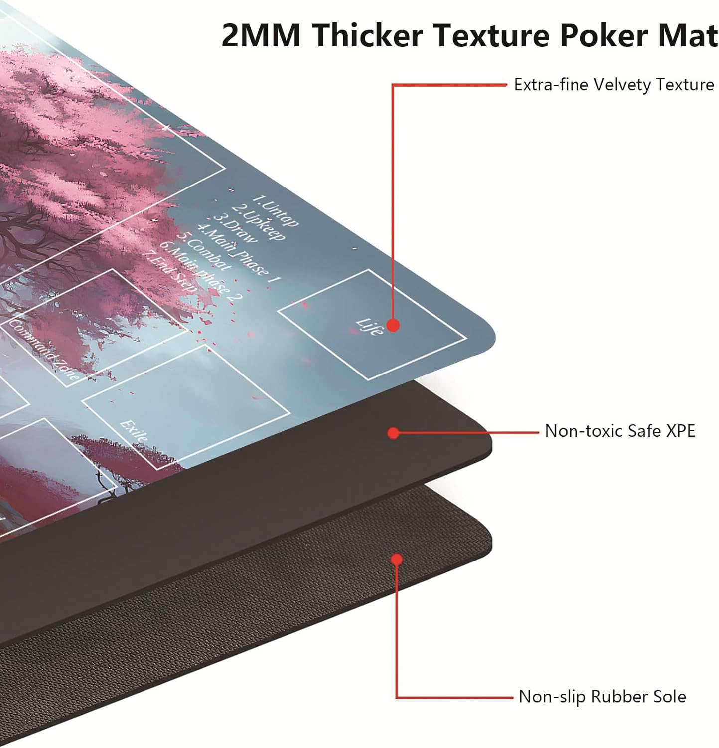 Upgrade your MTG game with a premium playmat designed for serious TCG players. Measuring 24 x 14 inches, this mat perfect for enhancing your focus and strategy during casual or competitive matches. Crafted with ultra-smooth fabric and a non-slip natural rubber base, it delivers consistent card movement while staying firmly in place. The stitched edges protect against fraying, while the included playmat storage bag adds portability for tournaments or game nights.It also makes an excellent oversize mousepad for home or office. Whether you're casting your first spell or leading a Commander deck, this playmat brings function, form, and flair to the battlefield. A must-have accessory for every Magic player.It also compatible with baseball card, football card, sports cards, CCC, TCG card.Card game accessories are made with a true passion for tabletop gaming. 【What you will get】 24 x 14 inches MTG / TCG Playmat x 1 Mtg playmat storage bag x 1
