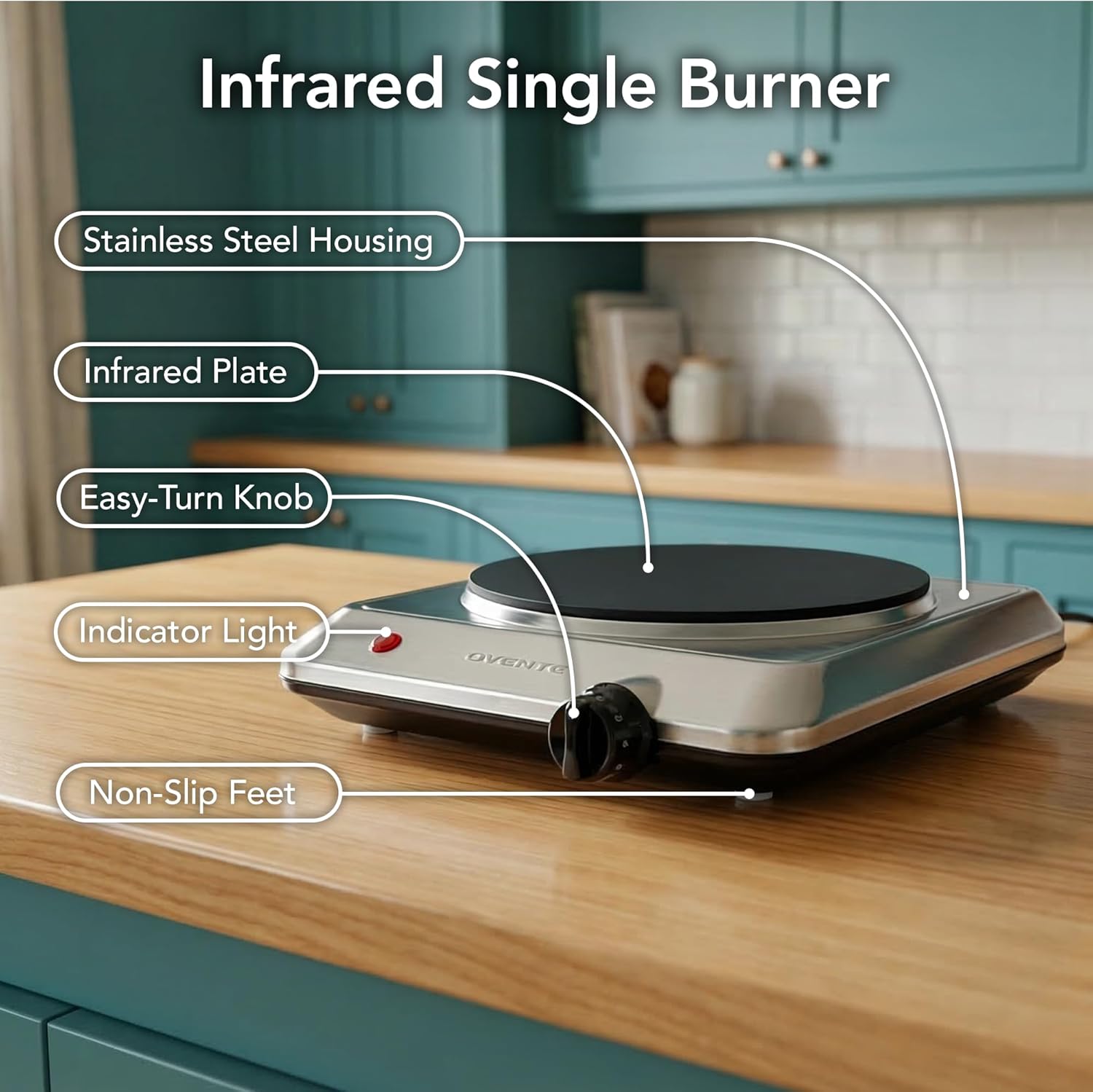 | Item Type Name | OVENTE Countertop Infrared Single Burner, 1000W Electric Hot Plate w/ 7.5” Ceramic Glass Cooktop, 6 Level Temperature Setting & Easy to Clean Base, Compact Stove for Home Dorm Office, Silver BGI201S |