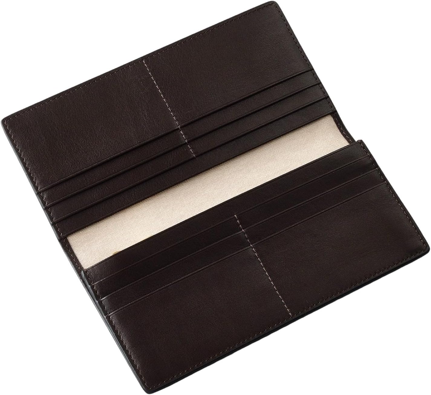 Product Description: Crafted from high-quality leather, this elegant flapover wallet features a sleek foil logo and a modern silhouette. Designed with functionality in mind, it offers 12 card slots, 3 slip pockets, and an interior zip pocket for secure storage. The asymmetric smooth leather back pockets add a stylish, contemporary touch. Dimensions: 7.25" x 3.5" x 0.75" - Please note: Due to the nature of genuine leather, slight variations in texture, natural marks, or subtle irregularities may occur. These are not defects but rather unique characteristics that highlight the authenticity and individuality of each piece.