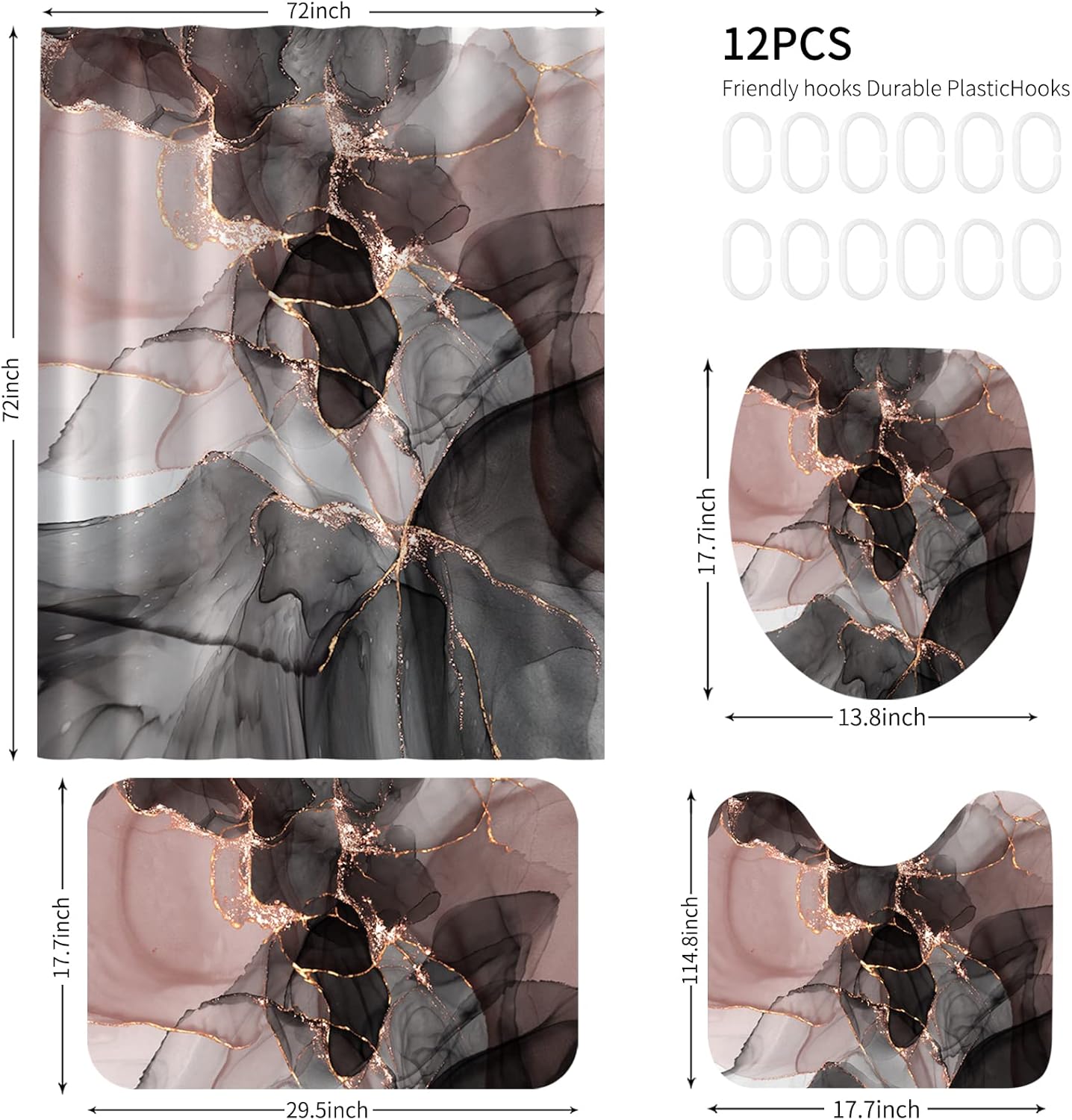 Why Choose us ? Seorsok is a home textile manufacturer specialized in shower curtain.We will provide you with good choice. Seorsok continues to develop better products,provide better services. Stylish and Elegant Shower Curtain Set Package contain: ❀1* High quality shower Curtain ❀1* Bath Mat ❀1* Toilet Lid Cover ❀1* Contour Rug U Shaped ❀12*Strong Plastic Hooks Shower Curtain Features: ❀Material:100% Premium Polyester fabric.3D graphic printing, clear graphics, not easy to fade, coexist with modern fashion, full of personality. ❀Function:Special Water-repellent treatment to prevent water from splashing around.A variety of patterns are available.Add a stylish touch to the bathroom. Offers privacy and decorative appeal. ❀Trendsetting designs:So classy and noble design. They look glittery ,It will make your bathroom look more unique and attractive.The colors are very pretty and vibrant. Service: Our Professional Service Team will solve your problems to ensure your complete satisfaction. Please contact the our team without hesitation if you have any problem about our product.We will immediately reply you within 24 hours and solve the problem until you satisfied. Quality 100% satisfaction guaranteed!