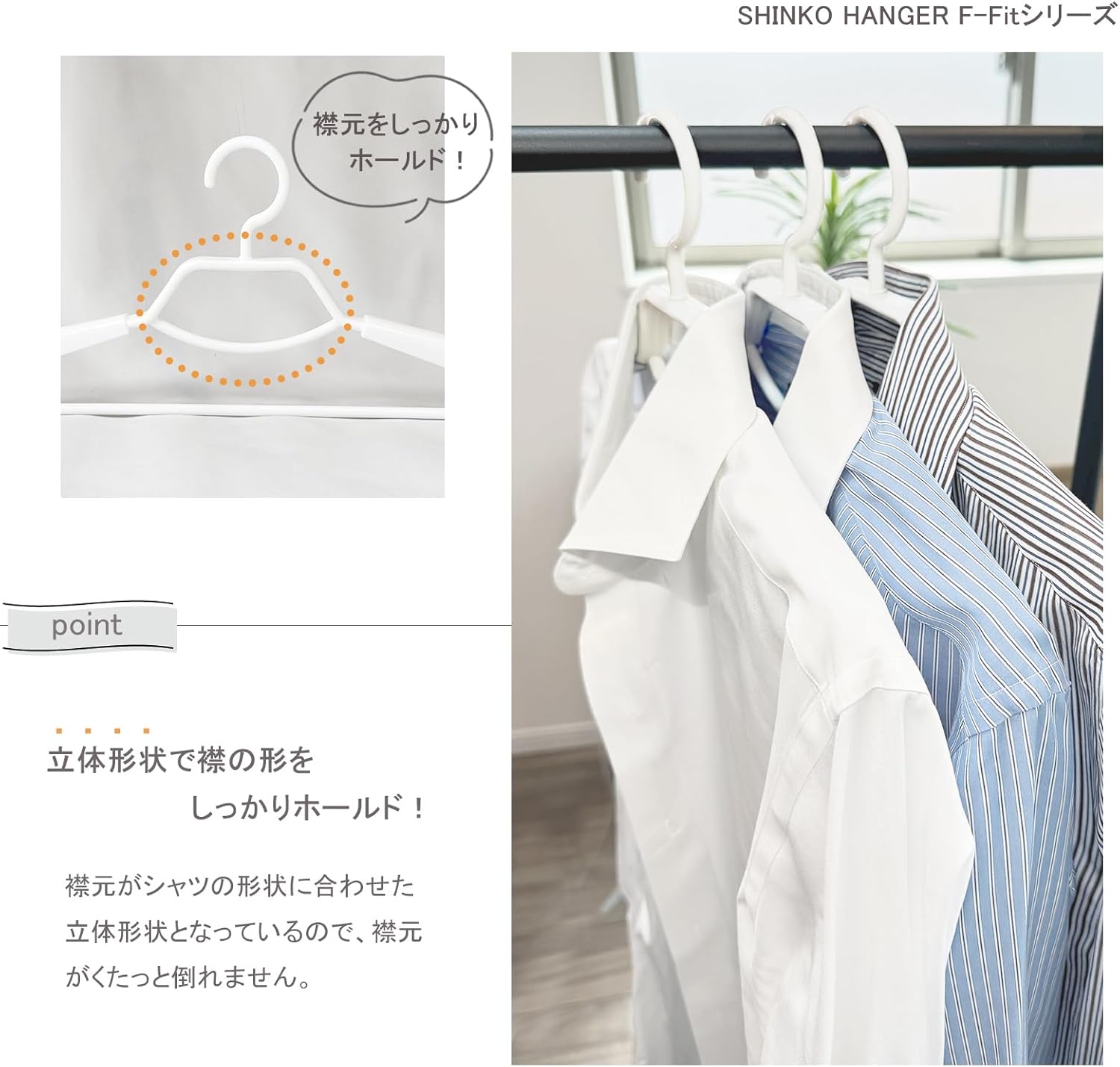 The hanger was born from the shape of a shirt to prevent the shirt from losing its shape. It has a shape that can hold the shape of the collar, and the shoulders slide from 15.7 to 20.5 inches (40 to 52 cm), so it fits both men and women. Size: Approx. Width: Approx. 15.7 - 20.5 inches (40 2.1cm thick