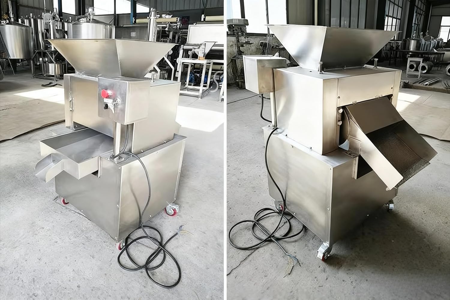 This commercial juicer is designed for high-efficiency juice extraction, making it the perfect choice for restaurants, juice bars, and other commercial establishments. Featuring a high juice yield and premium juice quality, it easily extracts fresh juice from a variety of fruits and vegetables, such as oranges, lemons, apples, tomatoes, and ginger. Whether you're looking for an orange juice machine, a lemon squeezer, or a multi-functional fruit and vegetable juicer, this unit can handle it all. Thanks to its cold press technology, this commercial citrus juicer minimizes oxidation, keeping your juice fresh, nutritious, and full of flavor. The excellent separation efficiency ensures clean juice extraction, separating pulp from juice effectively and reducing cleaning time. With its large capacity and high output, it’s ideal for high-demand commercial environments, making it a reliable choice for any business. This industrial juicer can handle various materials, including citrus fruits, vegetables, and more, giving you versatility and a wide range of juice options. The low noise design ensures a quiet and pleasant working environment. Plus, we provide perfect after-sales service with full technical support, ensuring your juicer runs smoothly for years to come. Choose this commercial juicer machine to enhance your business, improve efficiency, and deliver fresh, high-quality juice to your customers every day.