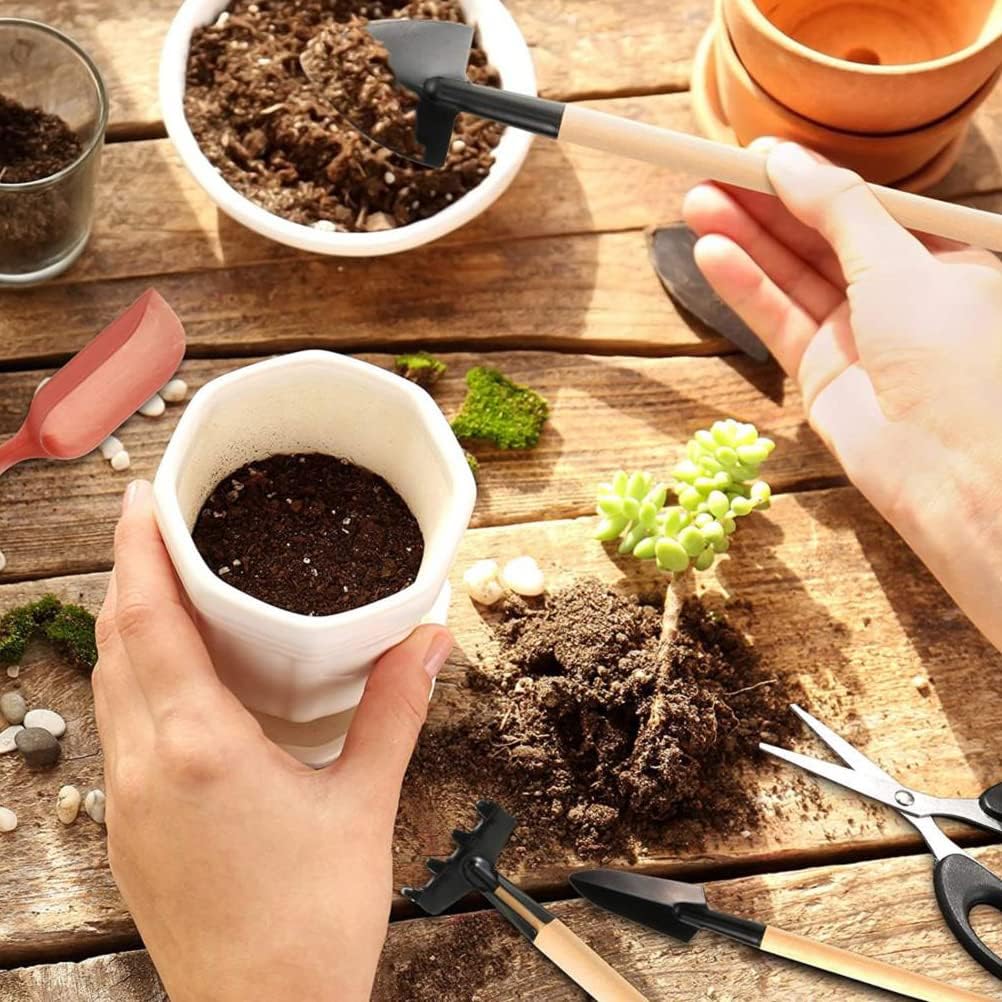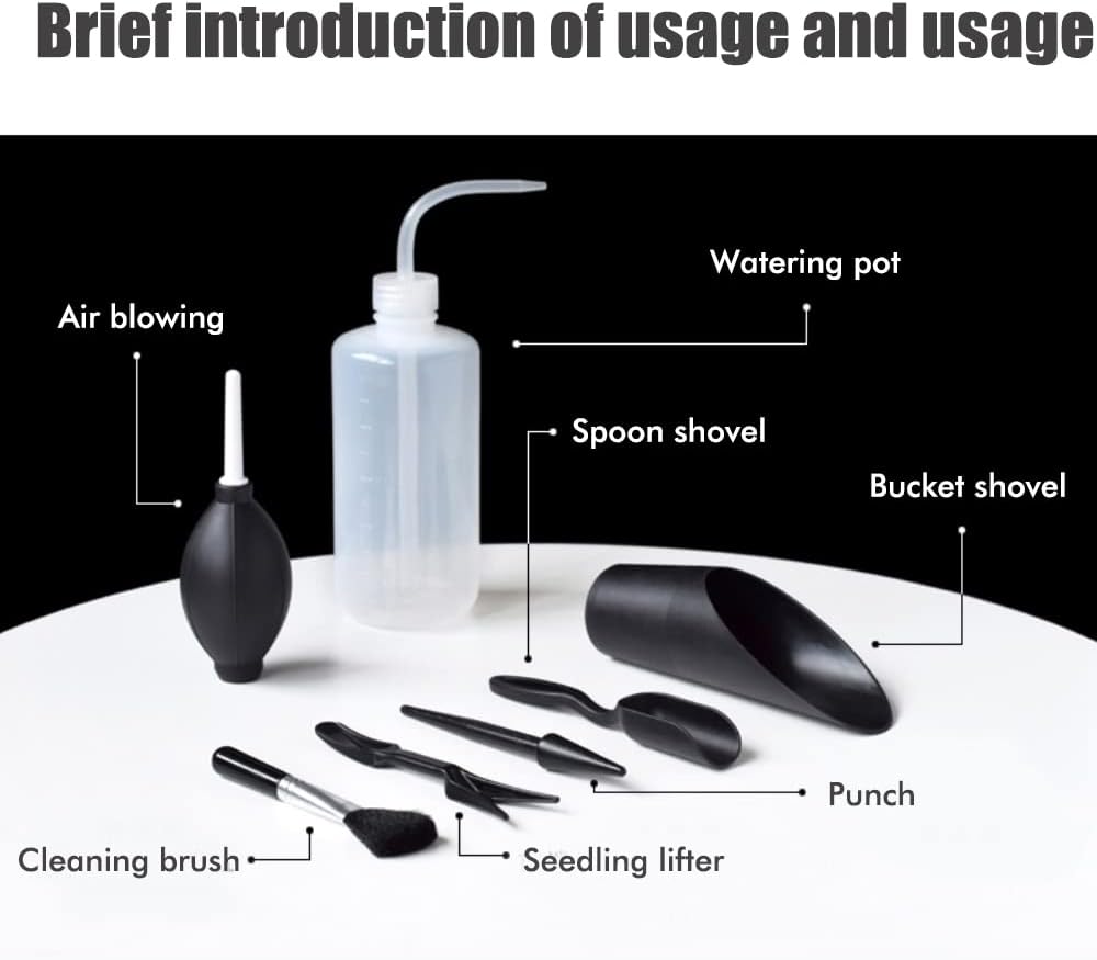 Mini Garden Hand Tools Set 14Pcs Succulent Tools Set Transplanting Kit for Miniature Planting Weeding Digging Planting Features: Totally 14pcs set. Made of plastic, wood, iron, rubber, stainless steel, and the tool set would maintain its style after multiple uses. It can meet various gardening needs, digging, watering, loose soil, changing water, cleaning, pruning, etc. Mini garden tool set is a great gift for people who love gardening, suitable for gardening lovers, easy to carry and easy to plant flowers and other plants. The transplanting tool is combined with seedling raising tools and dual-purpose transplanting tools to help loosen the soil, sowing, paving and transplanting safely. Descriptions: Material:4ABS Colour: Black Suitable for: household, floral, gardening, courtyard, etc. Package included: 14* Succulent Gardening Supplies